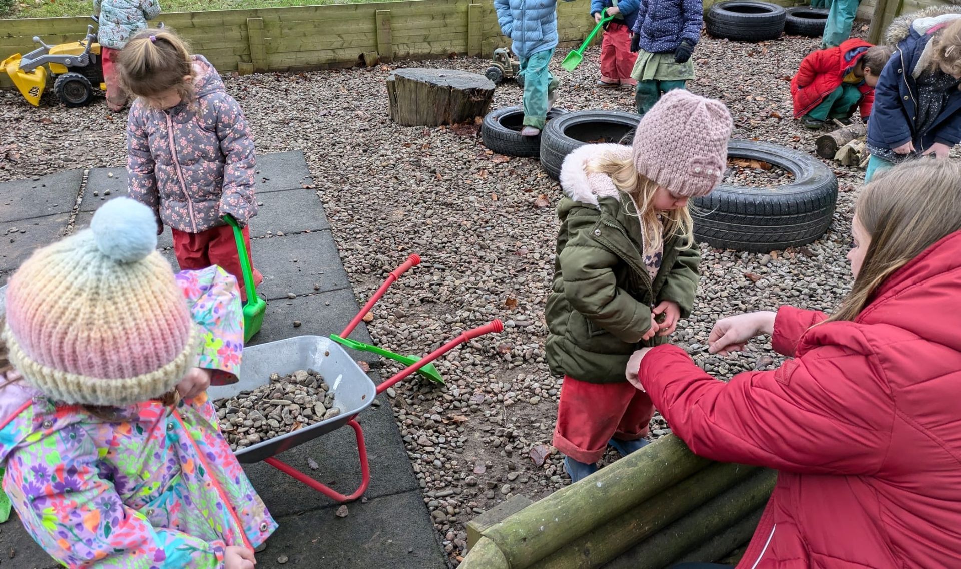 One of our main aims is to prepare children for their transition into our nursery class. For this, we encourage independence skills and co-operation. This includes beginning to manage their own personal hygiene and dressing themselves.