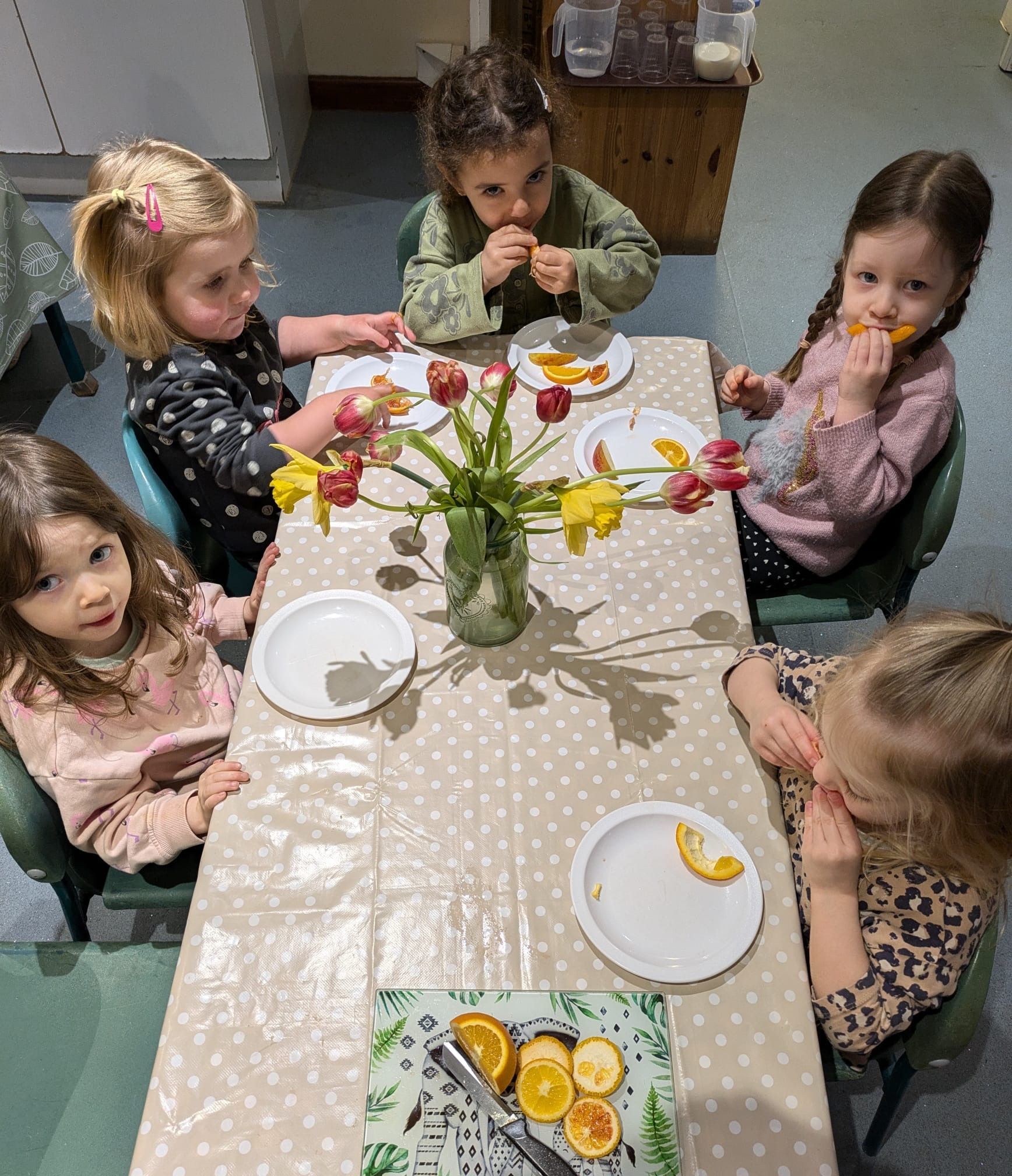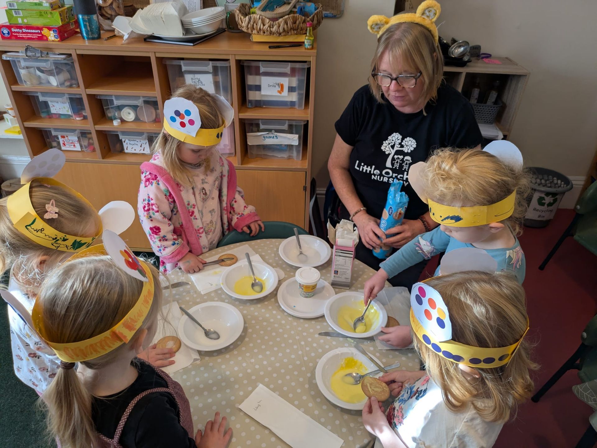 Each session contains a short circle time/registration with a learning focus, for example letters and sounds. Following circle time, the children have a healthy snack of fruit or vegetables with a drink of water or milk.