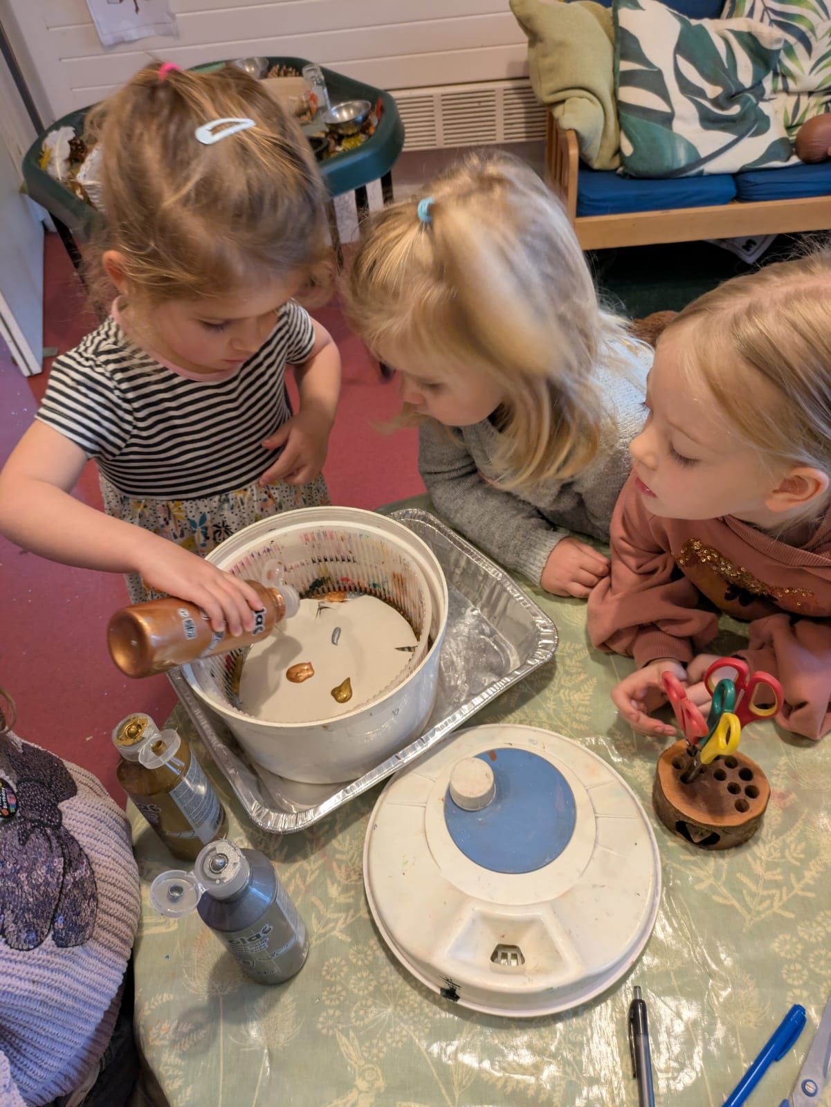 An important aim in this group is to prepare children for their transition to school. To successfully achieve this, we encourage independence by supporting toileting, dressing and self-care. By the end of their time in Green Group children can listen and focus in a group, dress themselves (for example putting a coat on), work collaboratively in a group, take turns and meet their own personal self-care needs (for example washing and drying their hands).